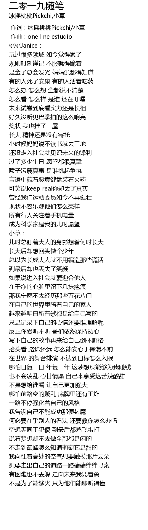 | [00:00.000] | 作词 : 冰摇桃桃Pickchi/小草 |