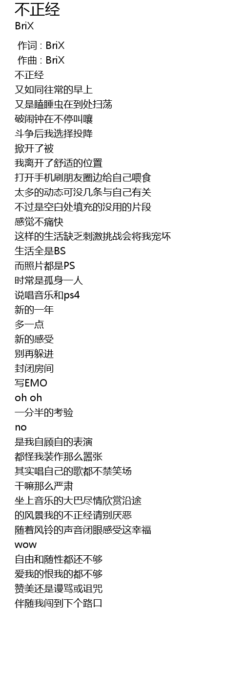 | [00:00.000] | 作词 : BriX |