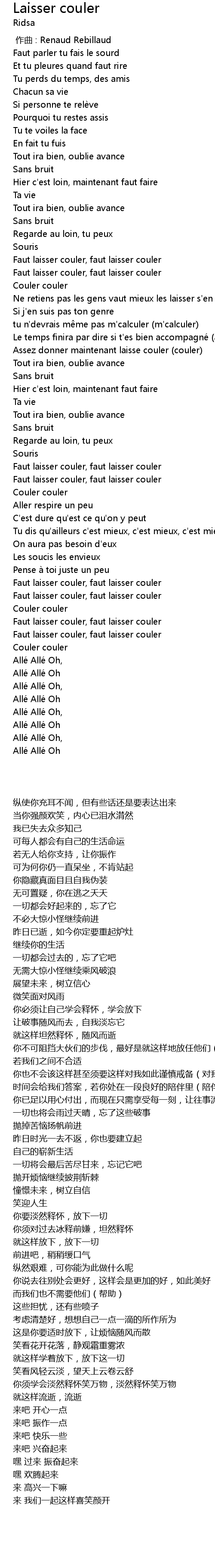 | [00:38.54] | Faut laisser couler, faut laisser couler |