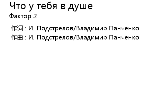| [00:00.000] | 作词 : И. Подстрелов/Владимир Панченко |