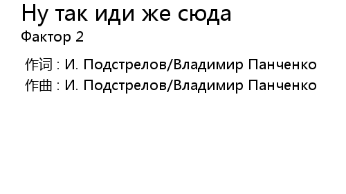 | [00:00.000] | 作曲 : И. Подстрелов/Владимир Панченко |