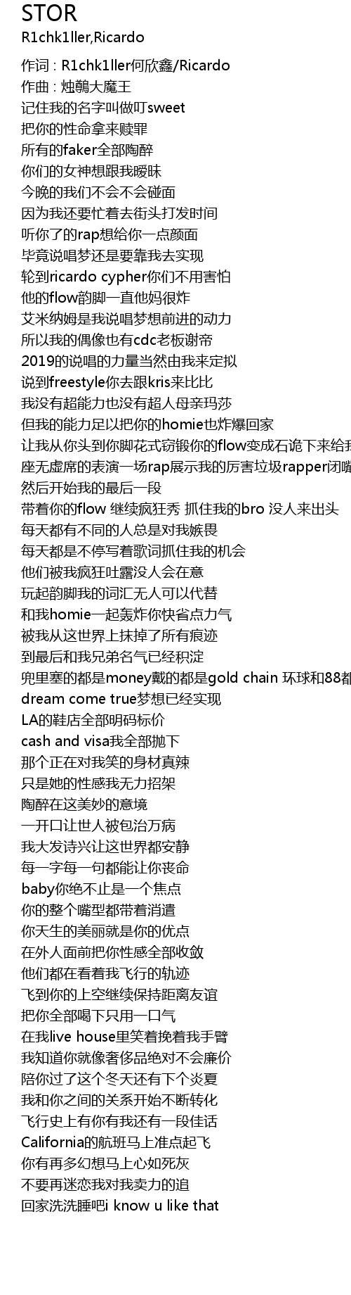 | 作词 : R1chk1ller何欣鑫/Ricardo | |