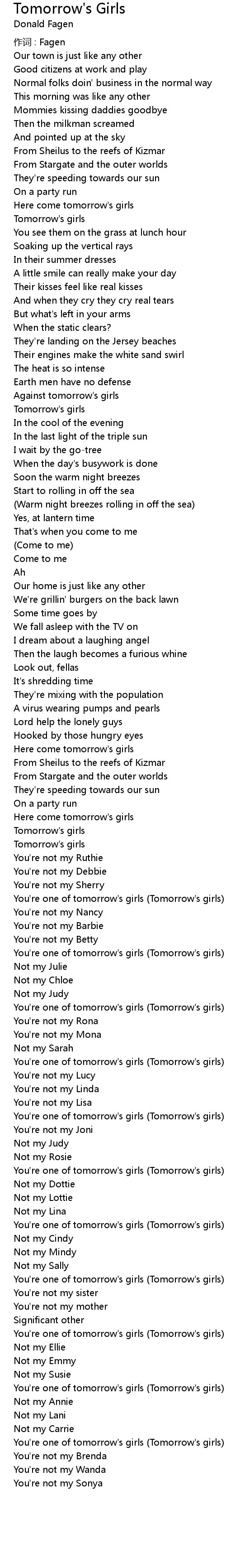 | You' re one of tomorrow' s girls Tomorrow' s girls | |