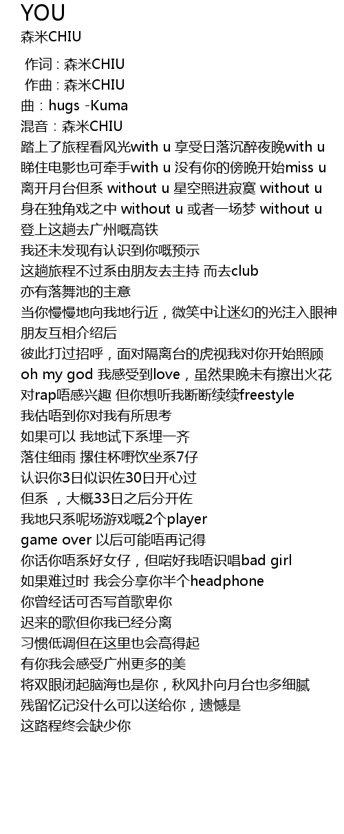 | [00:36.188] | 离开月台但系 without u 星空照进寂寞 without u |