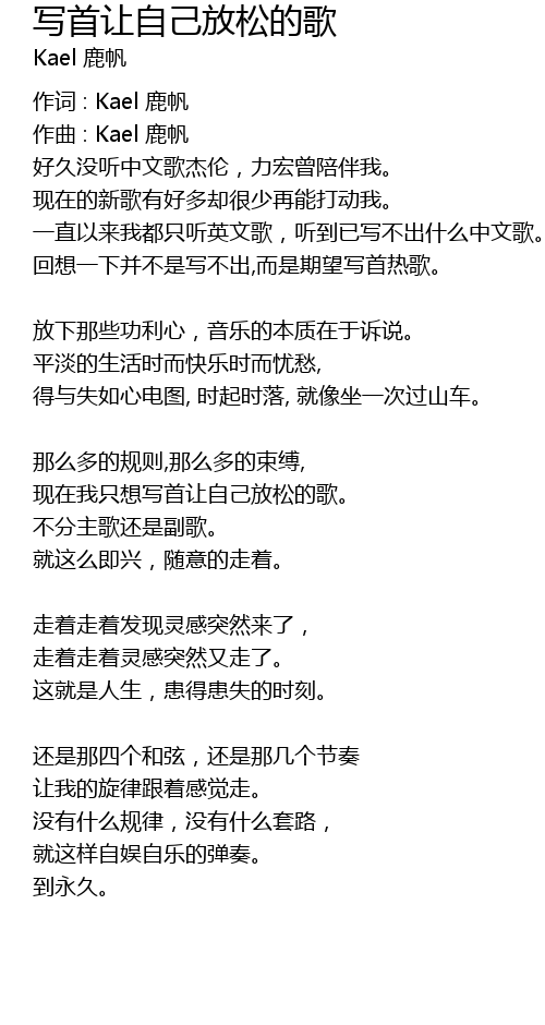 | xiàn zài wǒ zhǐ xiǎng xiě shǒu ràng zì jǐ fàng sōng de gē. | |