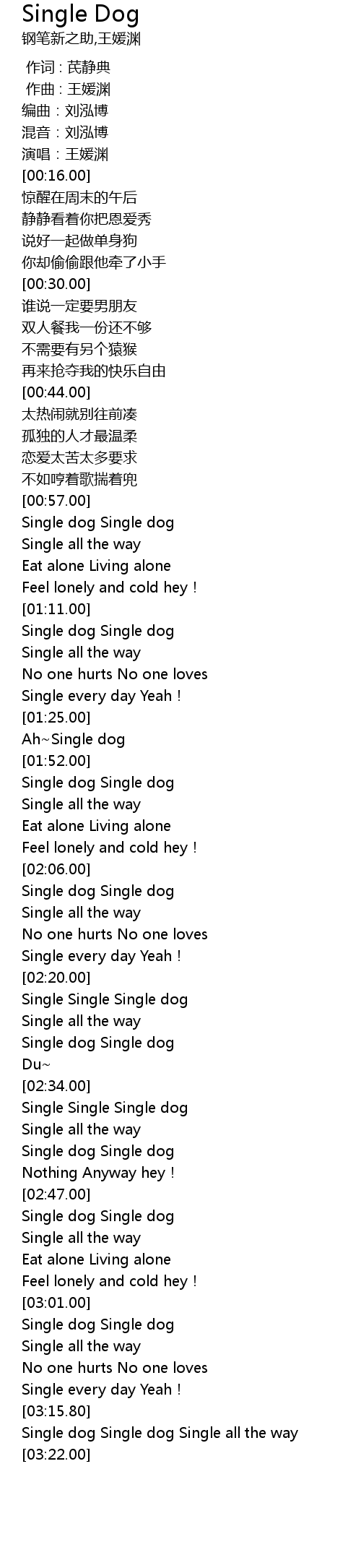| [03:16.00] | Single dog Single dog Single all the way |