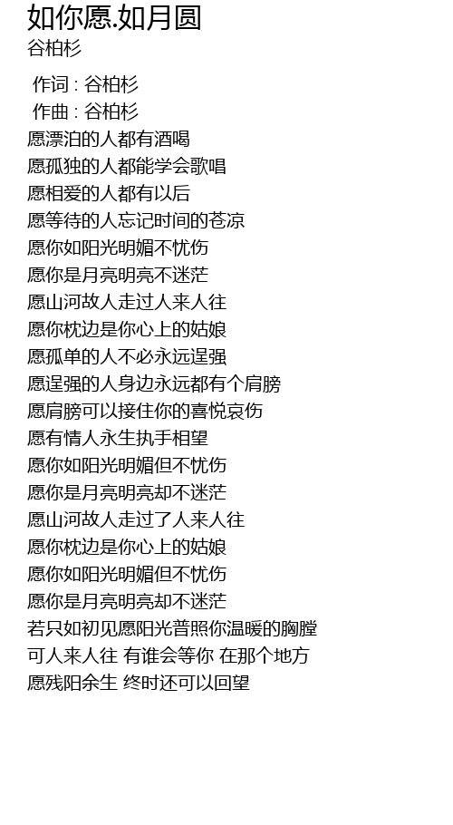 | [00:00.000] | 作词 : 谷柏杉 |