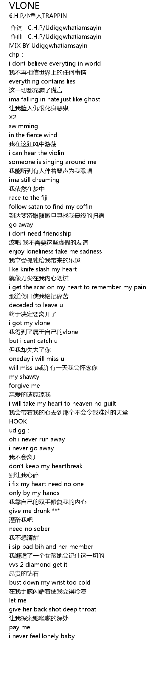 | [00:00.000] | 作词 : C.H.P/Udiggwhatiamsayin |