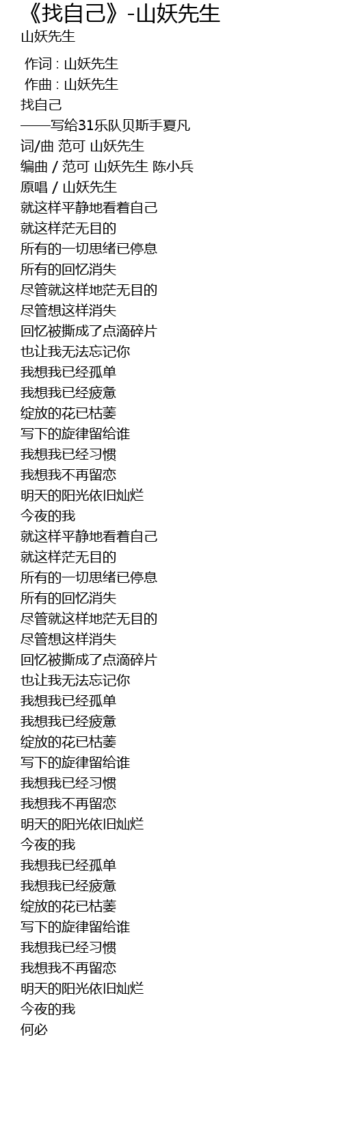 | [00:13.518] | 词/曲 范可 山妖先生 |
