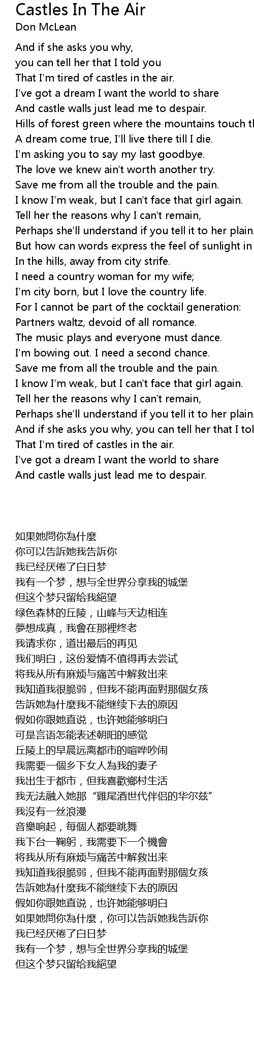 | [00:36.860] | A dream come true, I'll live there till I die. |