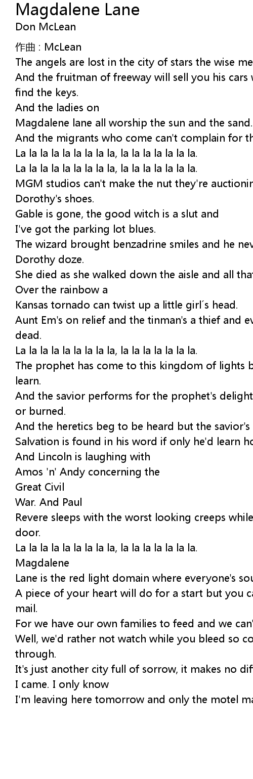 | Song | Magdalene Lane |