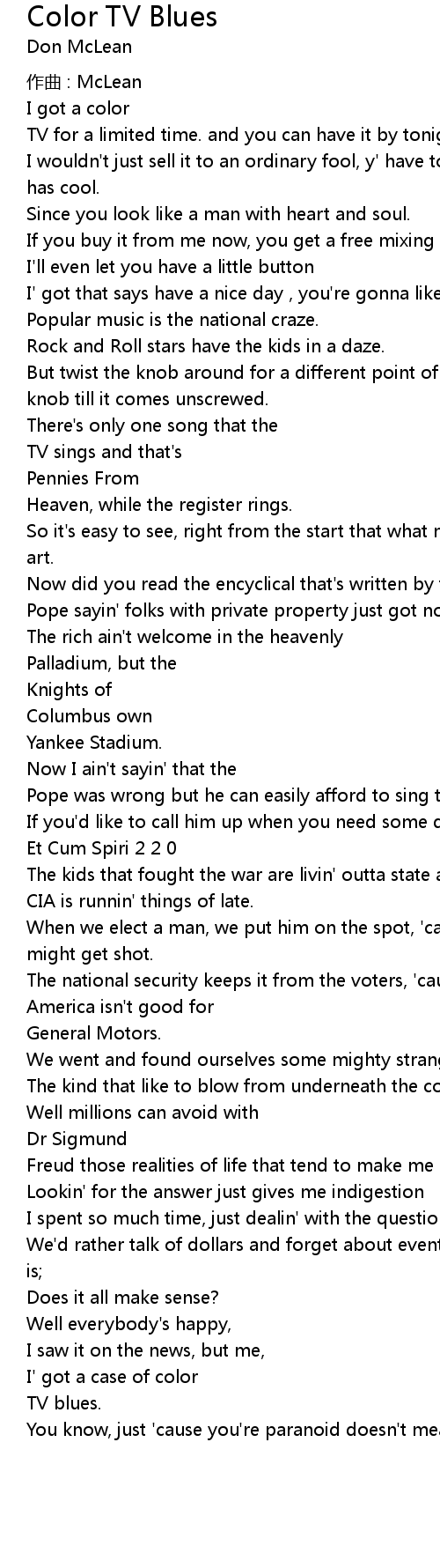 | Song | Color TV Blues |