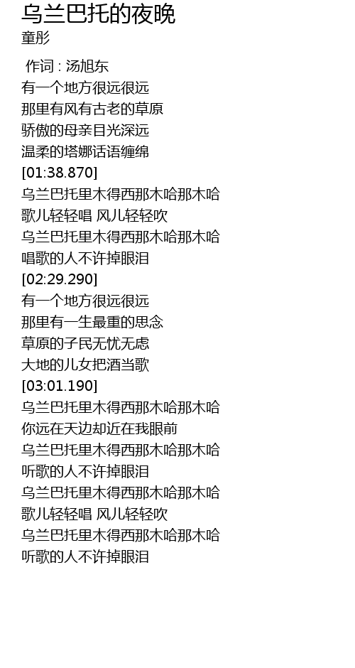 | [03:01.940] | 乌兰巴托里木得西那木哈那木哈 |