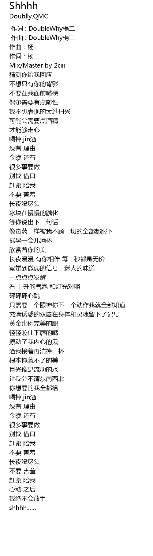 | [00:00.000] | 作词 : DoubleWhy楊二 |