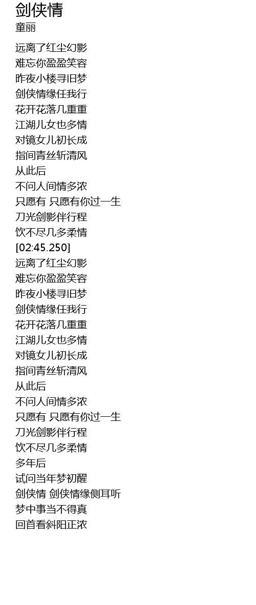 | [04:48.350] | 剑侠情 剑侠情缘侧耳听 |