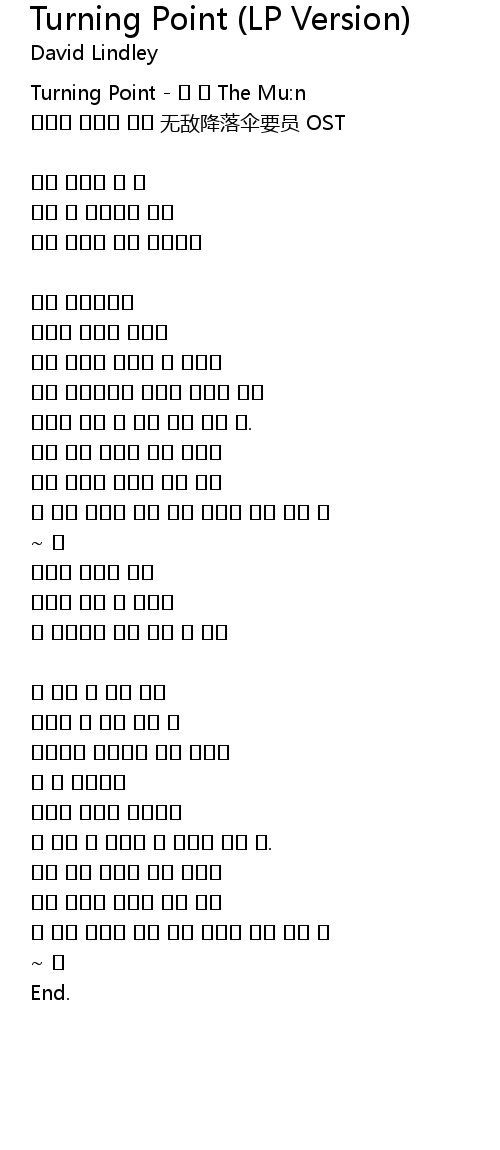 | Song | Turning Point (LP Version) |