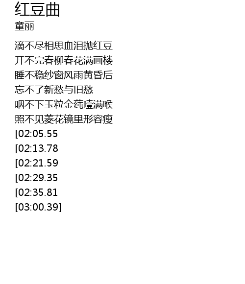 | [00:40.28] | dī bù jìn xiāng sī xuè lèi pāo hóng dòu |