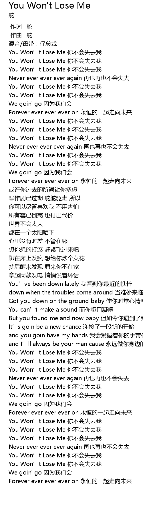 | [00:18.222] | You Won’t Lose Me 你不会失去我 |