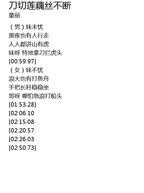 | [03:18.74][02:20.57] | 刀切莲藕丝不断 |