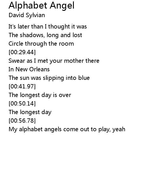 | [00:57.90] | My alphabet angels come out to play, yeah |