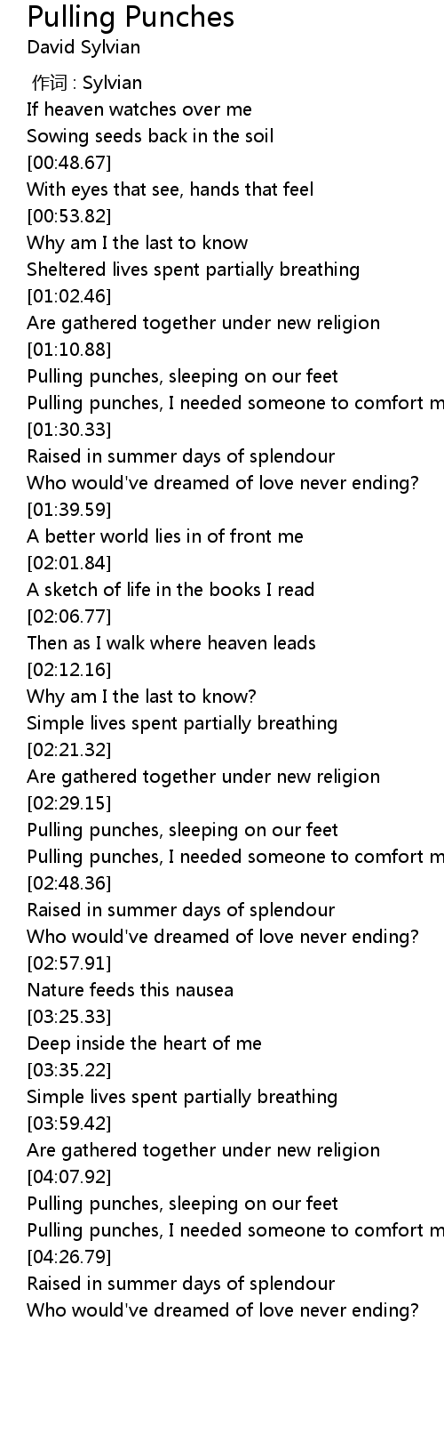 | [02:39.46] | Pulling punches, I needed someone to comfort me |