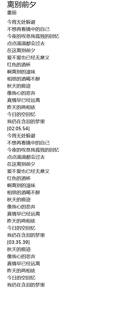 | [02:26.39] | 今夜的叹息我孤独的回忆 |