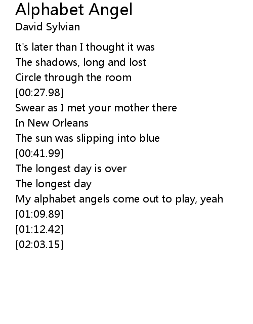 | [00:56.13] | My alphabet angels come out to play, yeah |