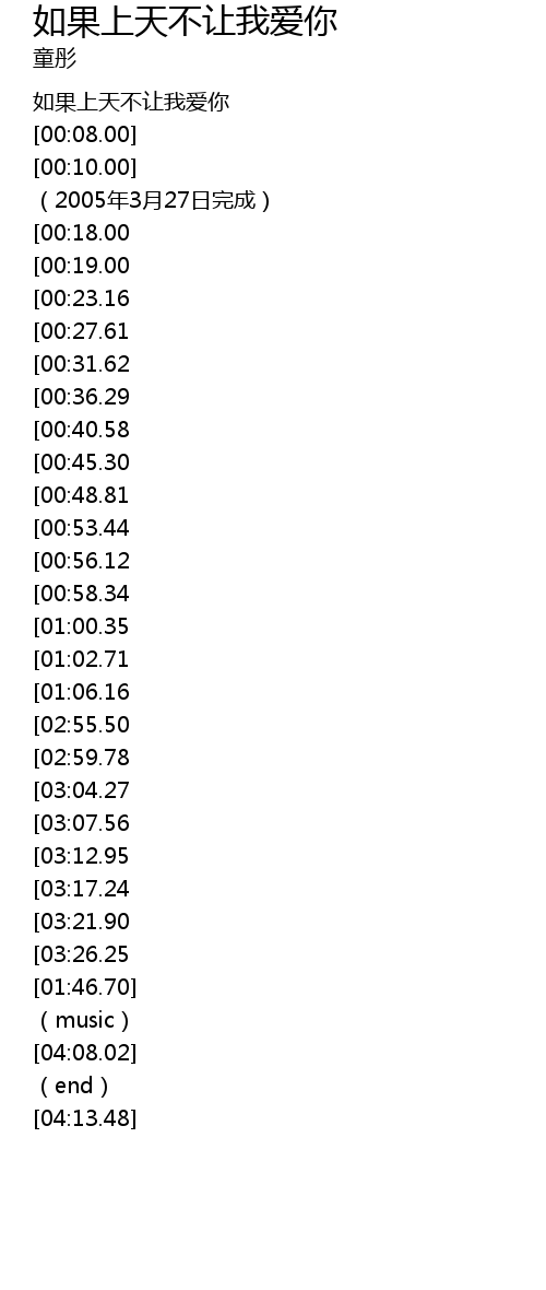 | [03:47.51][03:12.95][01:28.32] | 如果上天不让我爱你 |