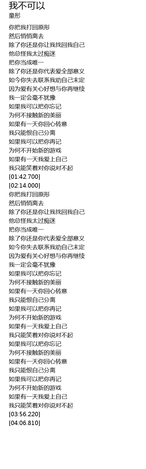 | [00:40.900] | chu le ni hai shi ni rang wo zhao hui wo zi ji |