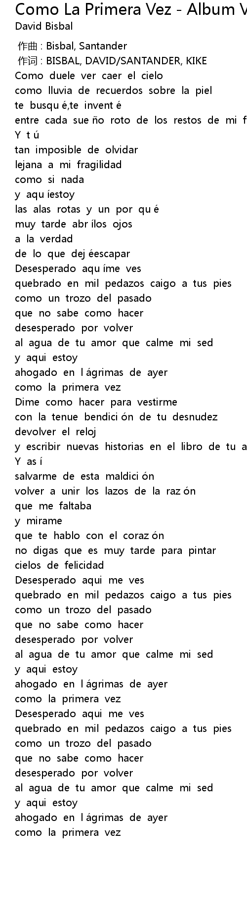 | [00:00.00] | zuo qu : Bisbal, Santander |