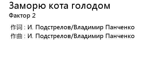 | [00:00.000] | 作曲 : И. Подстрелов/Владимир Панченко |