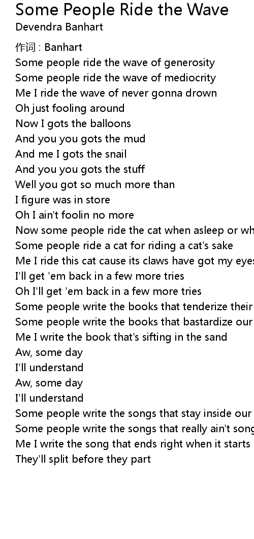 | Song | Some People Ride the Wave |