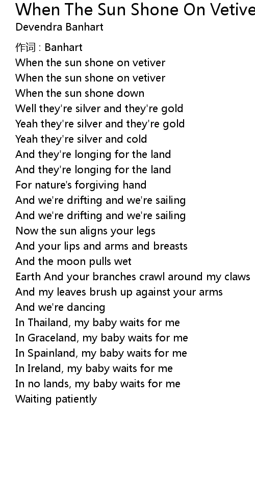 | Song | When The Sun Shone On Vetiver |