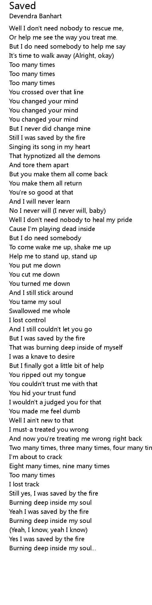 | Yeah I was saved by the fire | |