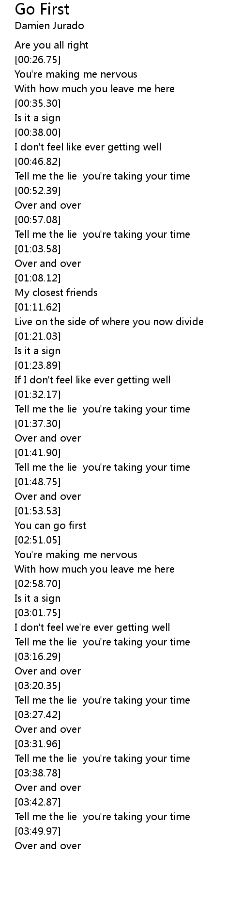 Tell me the lie you're taking your time |