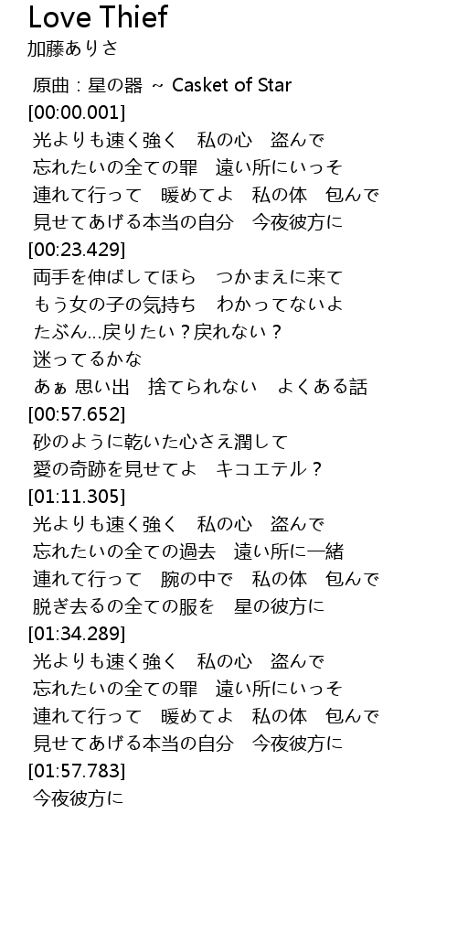 | [00:00.000] | 原曲:星の器 ~ Casket of Star |