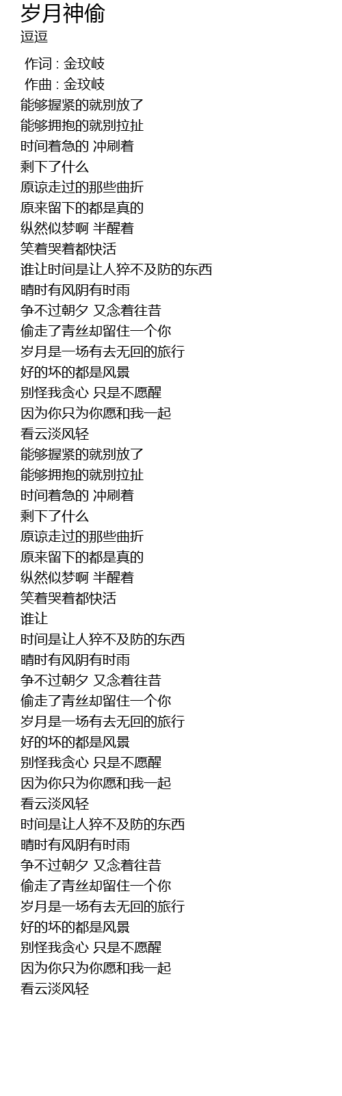| [02:31.753] | 偷走了青丝却留住一个你 |