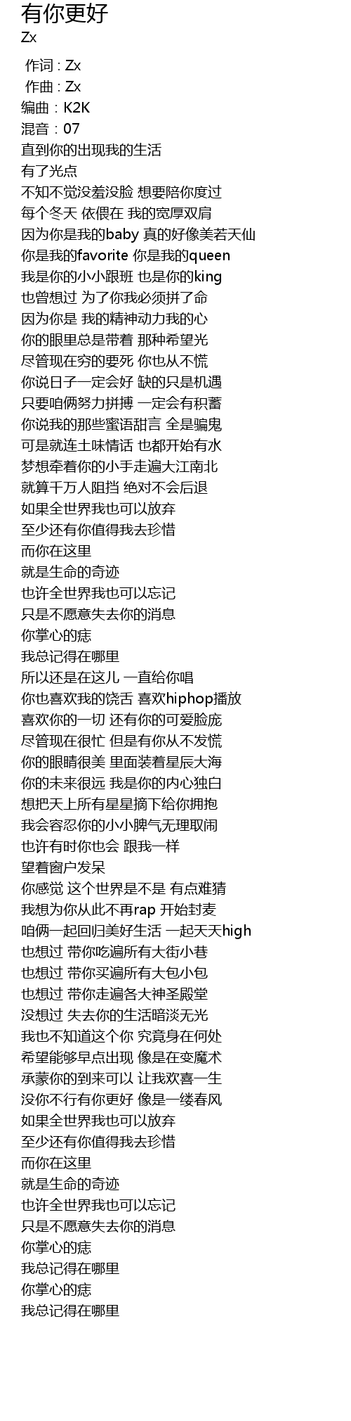| [00:55.165] | 你是我的favorite 你是我的queen |