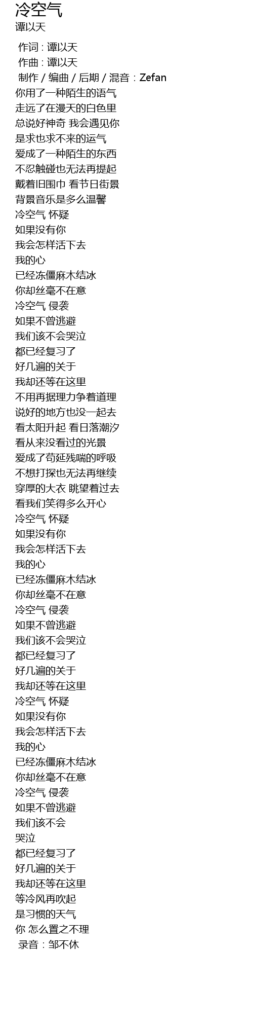 | [02:35.33] | 冷空气 怀疑 |