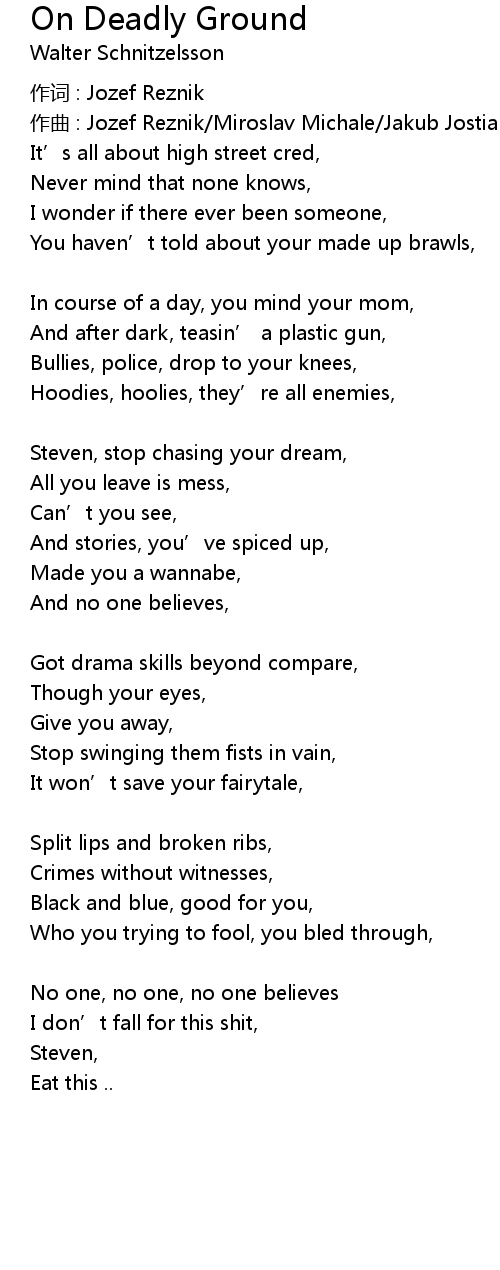 | Song | On Deadly Ground |