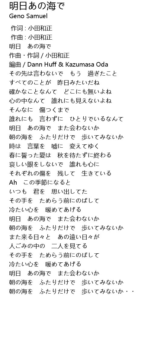 | [04:28.458] | 朝の海を ふたりだけで 歩いてみないか |