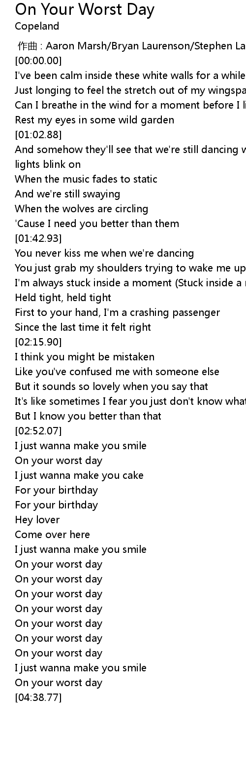 | [00:00.000] | zuo qu : Aaron Marsh Bryan Laurenson Stephen Laurenson |