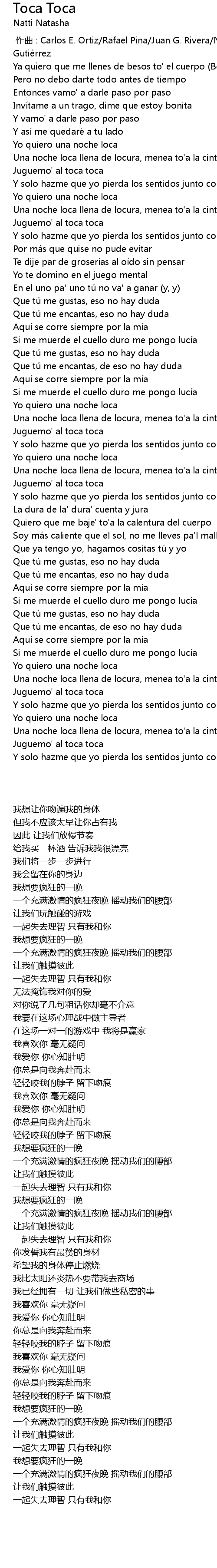 | [02:18.094] | Una noche loca llena de locura, menea to'a la cintura |