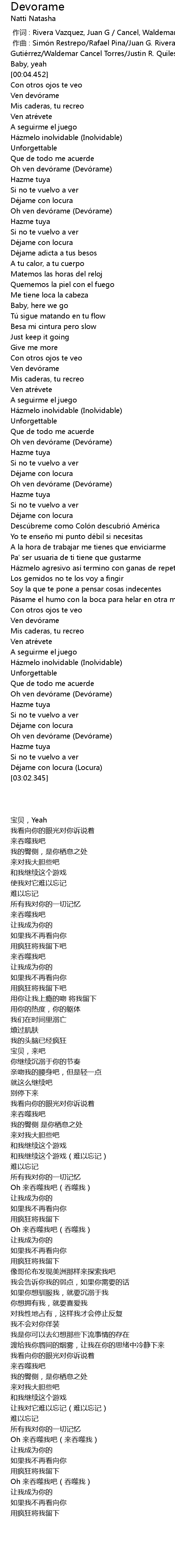 | [00:31.201] | Oh ven devórame (Devórame) |