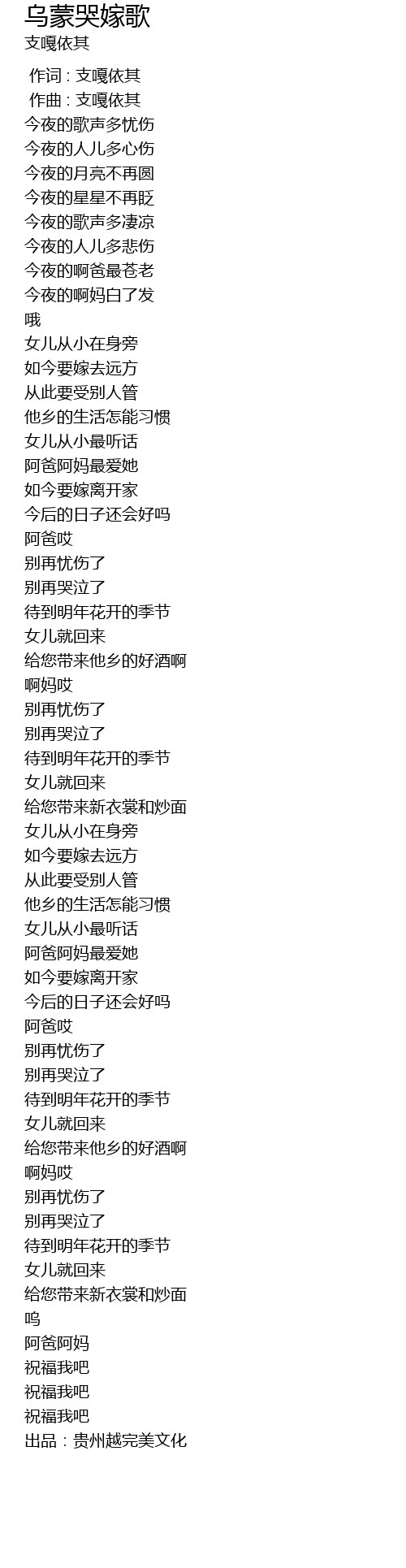 | [05:40.51] | 出品:贵州越完美文化 |