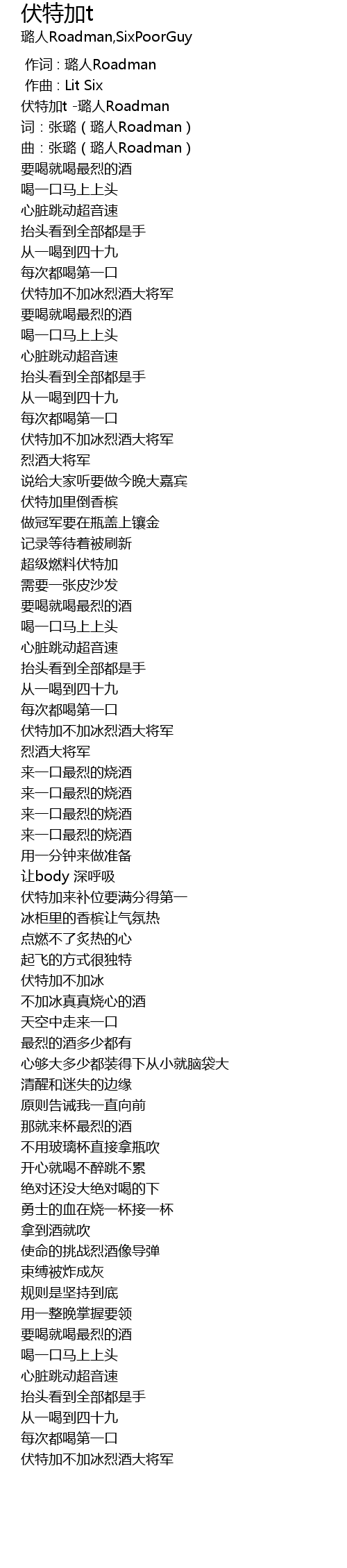 | [00:00.832] | 伏特加t -璐人Roadman |