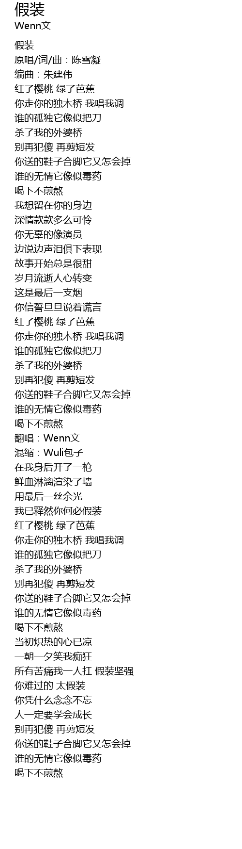 | [02:32.211] | wǒ yǐ shì rán nǐ hé bì jiǎ zhuāng |