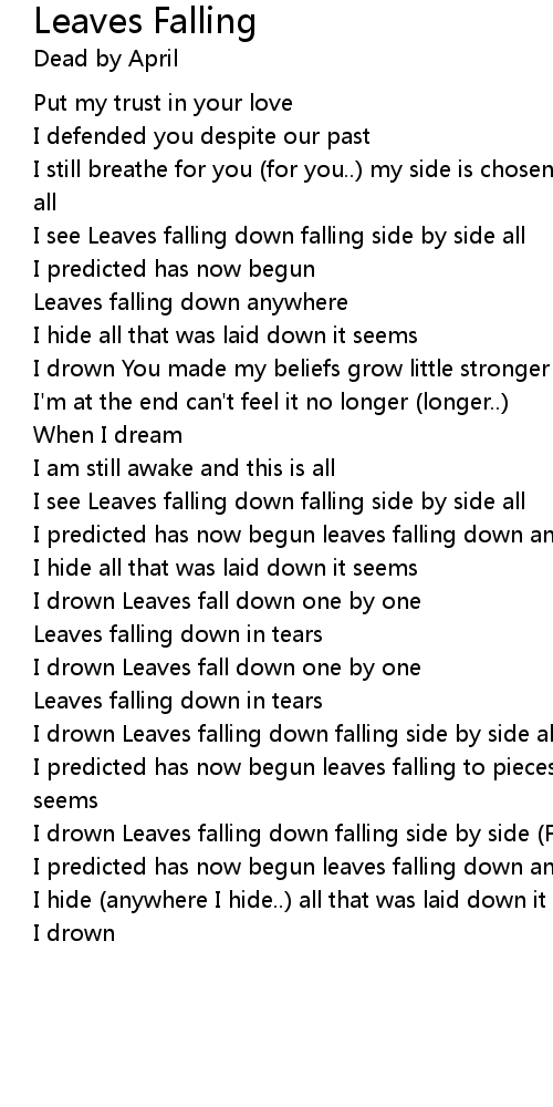 I drown Leaves falling down falling side by side (Falling down..) all |
