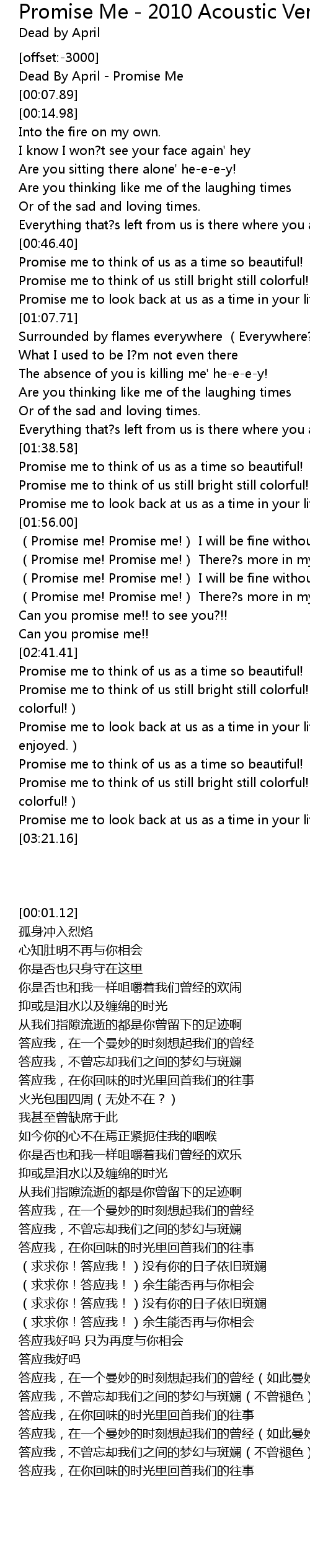 | [02:01.22] | Promise me! Promise me! There? s more in my life to see you? |