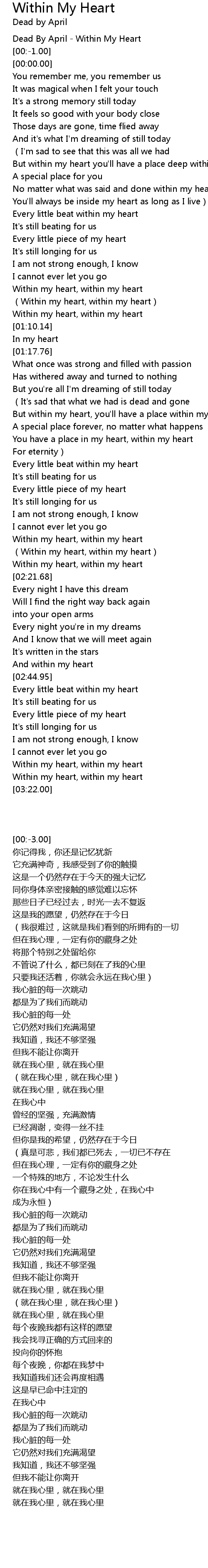 | [01:37.39] | But within my heart, you'll have a place within my heart |